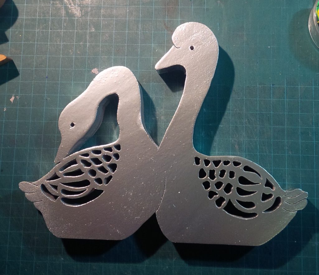 A lovely pair of swans, made in pine but painted in a shiny chrome. Personally, I love the look of wood, but have to admit that sometimes a different finish can produce striking results.
