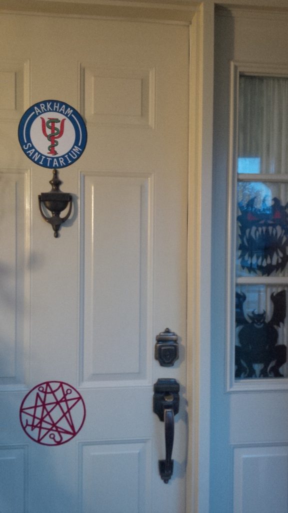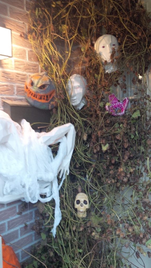 Here’s a shot of the LHS of the porch. I made use of leftover hop vines to create an interesting backdrop. It made a good way to hold a lot of the smaller props. It got some positive comments from the kids who came by, as it was something they’d never seen before!